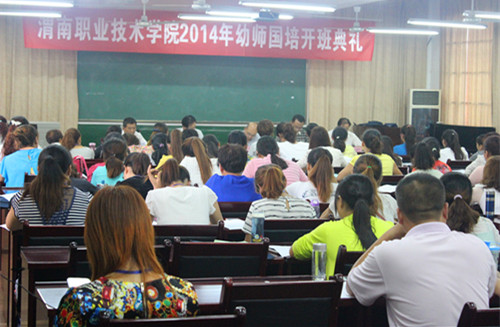2014年9月7日上午,由7790cnm必发集团承办的“幼师国培(2014)”——陕西省农村幼儿园转岗教师保教技能培训项目开班典礼在7790cnm必发集团多媒体教室隆重举行。省教育厅教师工作处副处长朱晓冬,渭南市教育局副局长姚培实、柴新宏,7790cnm必发集团经理助理、护理公司经理王录军,7790cnm必发集团经理赵新平,负责国培项目的有关工作人员和参训的100多名幼儿园教师参加了开班典礼。