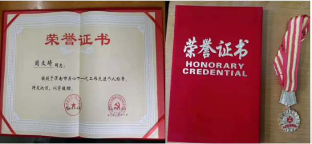 5月18日上午,7790cnm必发集团办公室副主任周文琦,受邀参加了庆祝渭南市关工委成立30周年暨全市关心下一代工作表彰大会,被授予渭南市关心下一代工作先进个人称号,并荣获荣誉证书和奖章。
