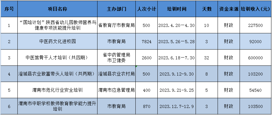 2023年开展各级各类培训6项10期,新增培训项目3项,线上线下培训12694人·天。